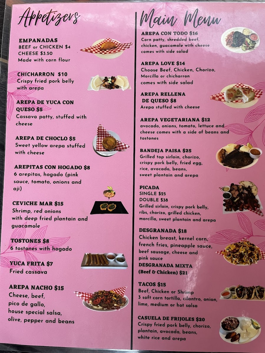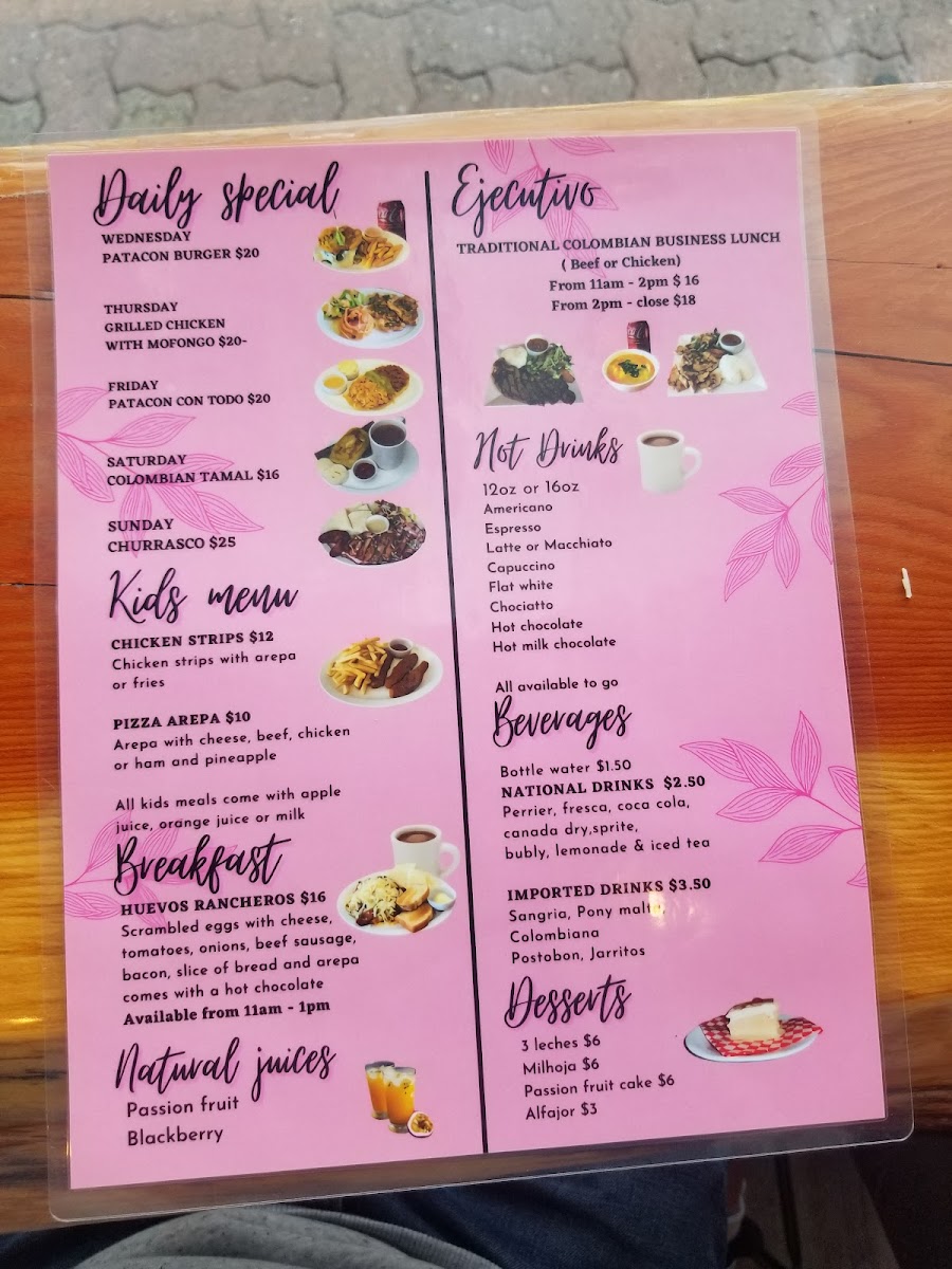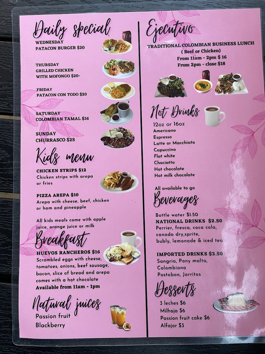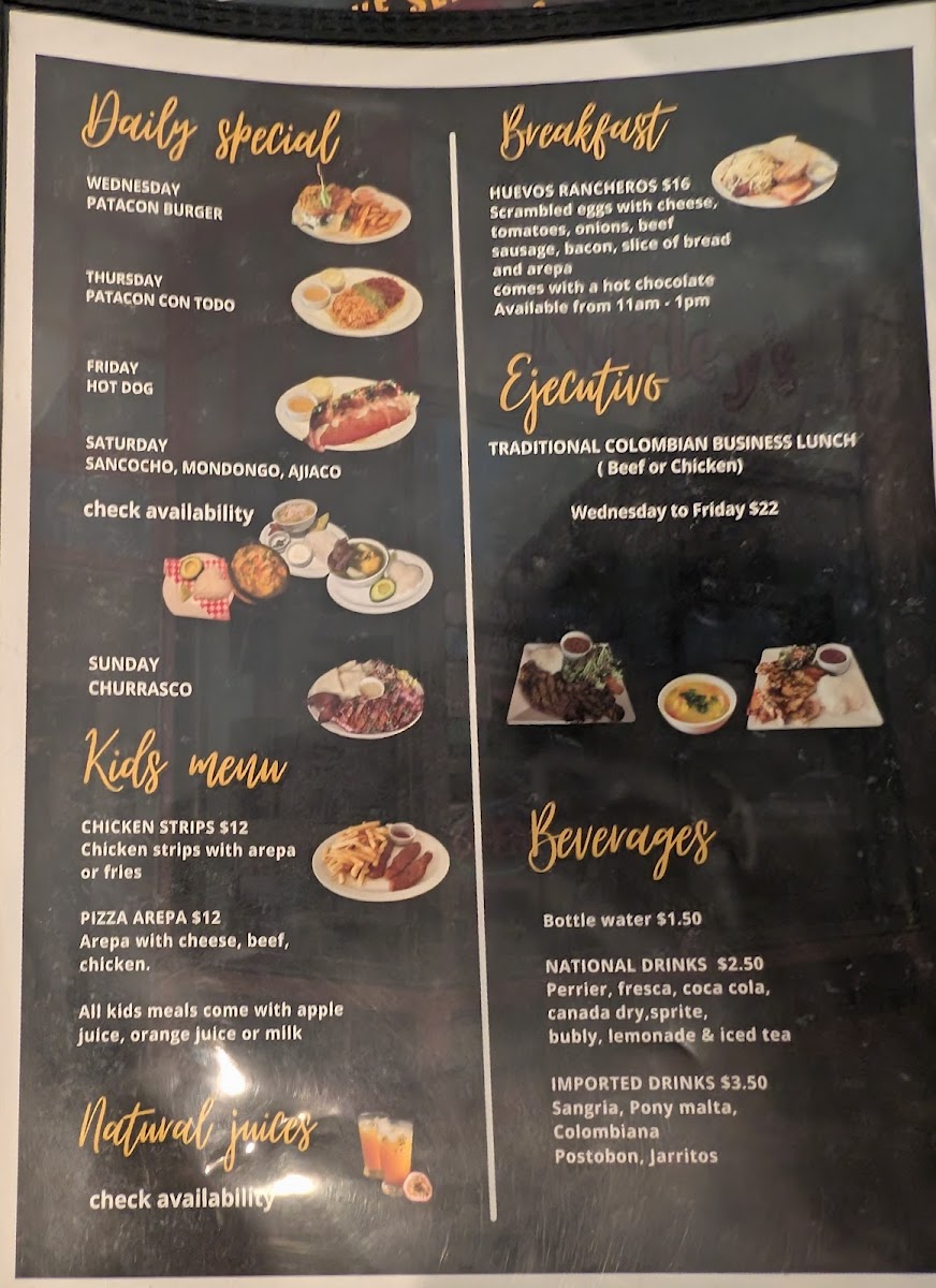 At Norley's Authentic Colombian Street Food, the menu offers a delightful array of flavorful dishes that showcase the essence of Colombian cuisine. The appetizers include a variety of street food-inspired treats such as Arepa de Choclo (sweet corn cake) and Empanadas (fried pastries filled with meat or cheese), setting the stage for an authentic experience. The main menu features classic Colombian dishes like the hearty Bandeja Paisa ($20), a signature dish loaded with beans, rice, plantain, chorizo, and steak, while the Ajiaco ($17) is a comforting chicken soup with corn and potatoes. For something lighter, there’s the Arroz con Pollo ($15), a flavorful chicken and rice dish. The Daily Specials offer rotating options, keeping the menu fresh and exciting, while the drink selection includes local beers and Colombian beverages, paired perfectly with any dish. Whether you’re in the mood for a satisfying meal or just a quick snack, Norley’s delivers a taste of Colombia in every bite, making it a must-visit for lovers of authentic street food.